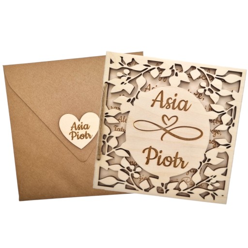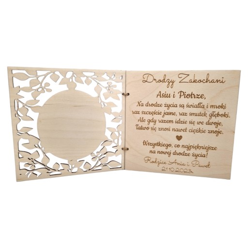 DREWNIANA KARTKA NA ŚLUB Z GRAWEREM