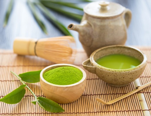 Matcha to zielona herbata w proszku o charakterystycznym, intensywnie zielonym kolorze.