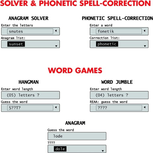 - Trzy gry słowne: Hangman, Word Jumble i Anagram.