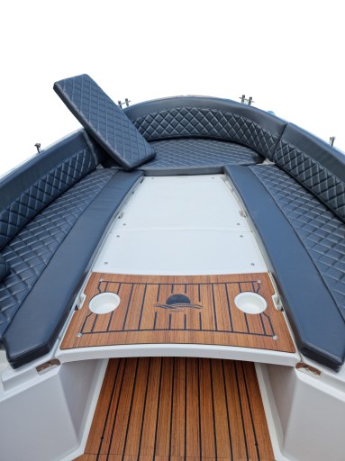 Łódź można dodatkowo wyposażyć w daszek bimini lub dziobowy daszek cabrio z transparentnymi ścianami - w zestawie z pokrowcem portowym, zamykającym całą przestrzeń pokładu podczas cumowania łodzi w porcie lub marinie.