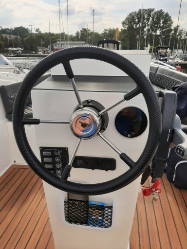 Łódź można wyposażyć w silnik zaburtowy o mocy od 9,9HP aż do 90HP zachowując w całym zakresie mocy świetne zdolności nautyczne.