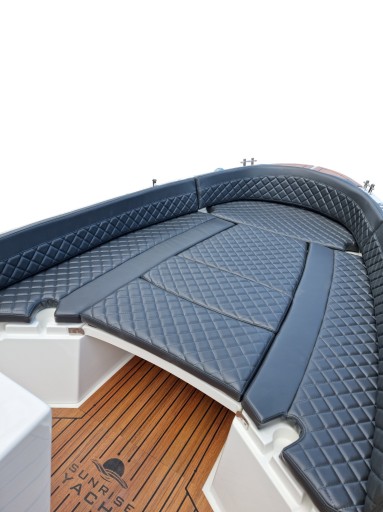 W części dziobowej można w prosty sposób zamontować pokład słoneczny o imponujących rozmiarach: o długości 1,90m lub zamiast niego zainstalować stolik, tworząc wygodną przestrzeń do siedzenia dla 8 osób.