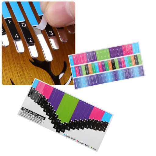 1. Fortepian kciuka: ta naklejka jest używana głównie do pianina kciuka, co jest wygodne dla początkujących do ćwiczenia i zapamiętywania nut.