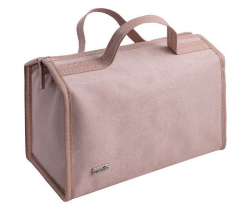 Wykonana z najwyższej jakości aksamitnego materiału, w kolorze bordowym. Kosmetyczka wykończona obszyciami lamówką z eko skóry w tym samym kolorze. Wnętrze wykończone podszewką z dwoma kieszonkami jedna z siateczki druga wykonana z podszewki całość w idealnie dobranym kolorze bordowym. Kosmetyczka jednokomorowa z możliwością usztywnienia wyposażona w małe okrągłe lusterko zamykana na suwak. Z przodu małe eleganckie, metalowe logo REED.