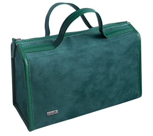 Wykonana z najwyższej jakości aksamitnego materiału, w kolorze bordowym. Kosmetyczka wykończona obszyciami, lamówką z eko skóry w tym samym kolorze. Wnętrze z jedną kieszonką wykonane z podszewki w idealnie dobranym kolorze bordowym. Kosmetyczka jednokomorowa, zamykana na suwak z dwoma zamkami takie zastosowanie suwaka zezwala na pełne otwarcie kosmetyczki co zwiększa przejrzystość zawartości kosmetyczki. Z przodu małe eleganckie, metalowe logo REED.
