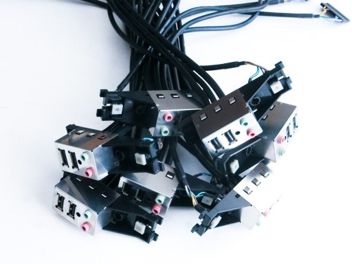 Przedmiotem sprzedaży jest używany widoczny na zdjęciach Front Panel Audio + 2 x USB + Power Switch firmy Fujitsu.