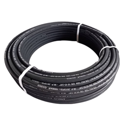 Zakuty Wąż Hydrauliczny 1SN AGRIFLEX z syntetycznej gumy, odporny na oleje, paliwa i warunki atmosferyczne. Gotowy do montażu.