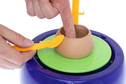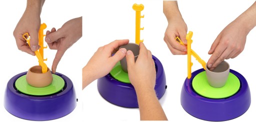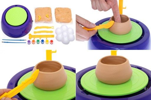 Zestaw rzeźbiarski z kołem garncarskim to świetna zabawka pozwalająca na tworzenie własnoręcznych dzbanków lub innych form z gliny. Takie koło garncarskie było znane już w starożytności. Urządzenie znacząco ułatwia wytwarzanie przedmiotów z gliny. Wykorzystując technikę toczenia można łatwo i szybko uzyskać regularną formę o gładkiej powierzchni.