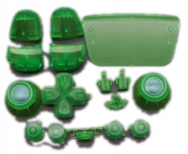 - W zestawie znajdują się wszystkie części widoczne na zdjęciu: przyciski, triggery, bumpery, d-pad, grzybki, zaślepka