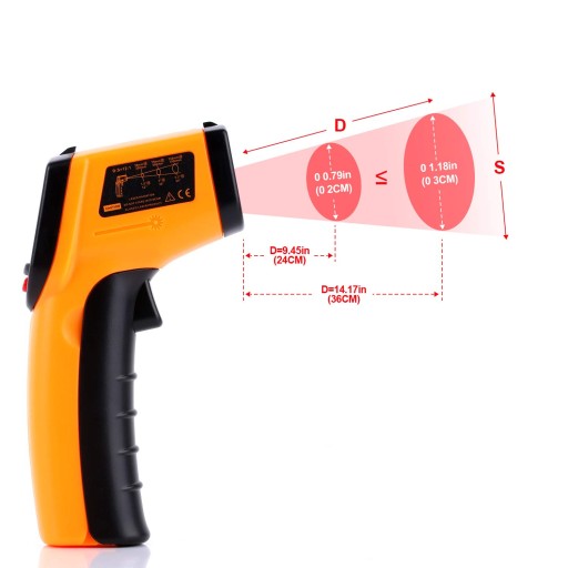 Urządzenie jest bardzo proste w obsłudze. Należy wycelować urządzenie w kierunku badanego obiektu i nacisnąć spust. Wynik pojawi się na ekranie. Idealny do prac w rolnictwie, budownictwie, motoryzacji, klimatyzacji, wentylacji, restauracjach, gospodarstwach domowych oraz firmach spożywczych.