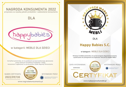 Pragniemy Państwa poinformować, iż otrzymaliśmy certyfikat Najlepsza Marka Mebli oraz Nagrodę Konsumenta edycja 2022r.
