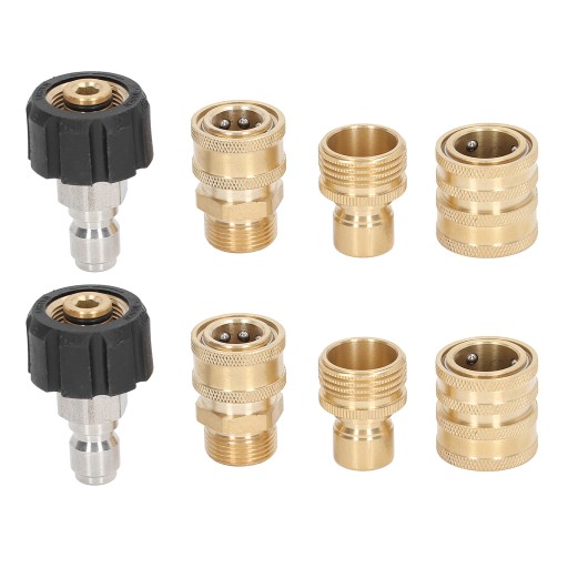 ▶️ Opakowanie: zawiera złącze obrotowe M22-14, wtyczkę 3/8 cala, szybkozłączkę 3/8 cala, głowicę męską M22-14, głowicę żeńską 3/4 cala, szybkozłączkę 1/2 cala, wtyczkę 1/2 cala i głowicę męską 3/4 cala .