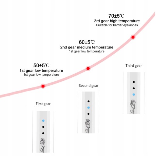 10-sekundowe podgrzewanie, naturalna lokówka, brak uszkodzeń rzęs, naturalne stereotypy, łatwość przenoszenia, ładowanie USB, podgrzewanie w stałej temperaturze, regulacja 3 biegów.
