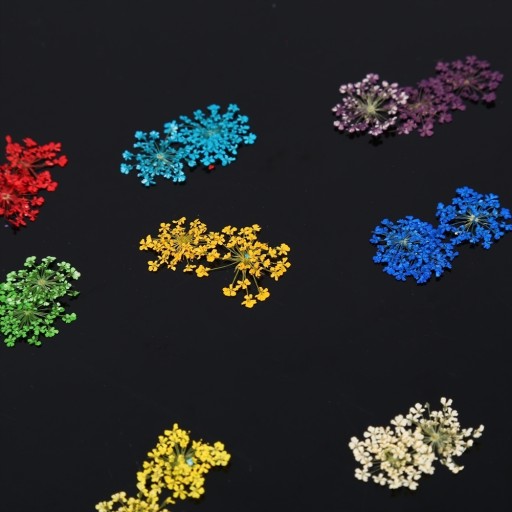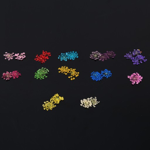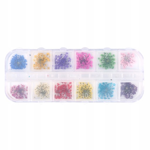 Ilość: 1 x pudełko suszonych kwiatów do paznokci (zawiera 12 różnych kolorów)