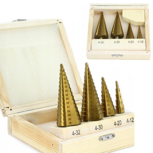 ZESTAW WIERTEŁ STOPNIOWE STOŻKOWE TYTAN HSS 4-32MM