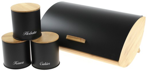 Stylowy i nowoczesny pojemnik na chleb z pokrywą i trzema pojemnikami .