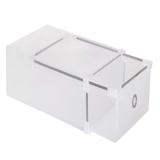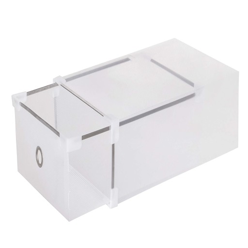 Pojemnik na obuwie został wyposażony w wysuwaną szufladę, które pozwoli na szybki dostęp do wybranych butów. Dodatkowo pudełko posiada specjalne zaczepy pozwalające na łączenie ze sobą pudełek umożliwiając tym samym ułożenie je na sobie. Używając organizera z zamknięciem buty zostaną ochronione przed kurzem oraz wilgocią.