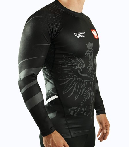 Rashguard męski "Polska" to czarna wersja oficjalnego stroju Reprezentacji Polski w Grapplingu. Noś go dumnie!