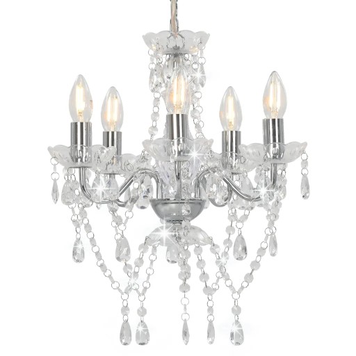 Żyrandol z kryształowymi koralikami, srebrny, 5 żarówek E14