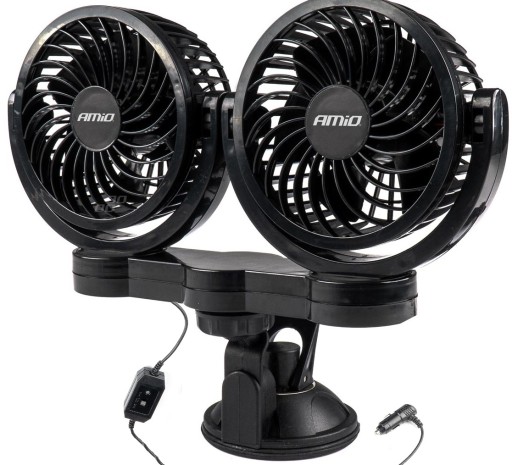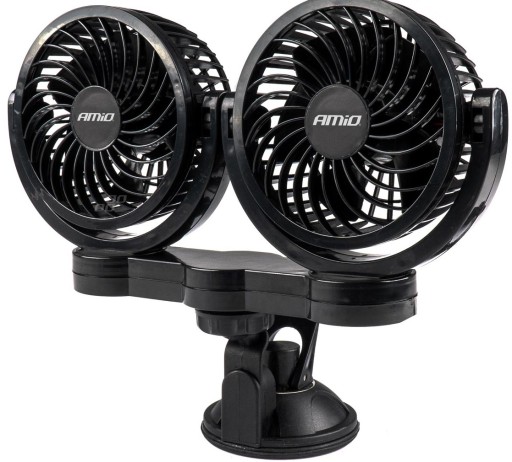 ✅AMiO PRO WIATRAK WENTYLATOR SAMOCHODOWY ZASILANY Z ZAPALNICZKI SAMOCHODOWEJ 24V PODWÓJNY MOCOWANY NA PRZYSSAWKĘ