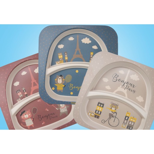Zestaw naczyń BONJOUR PARIS to przyjazny dla środowiska komplet naczyń idealny dla dzieci już od 12 miesiąca życia.