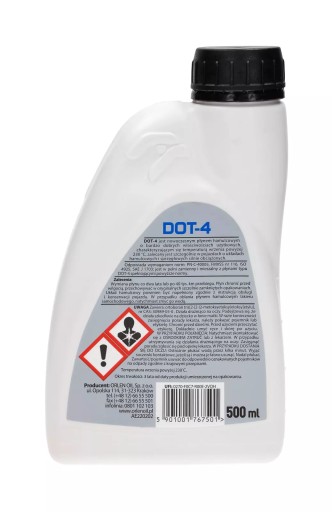 - Przeznaczony jest do hydraulicznych układów hamulcowych i sprzęgłowych samochodów osobowych, ciężarowych, autobusów, przyczep, motocykli, wózków akumulatorowych itp. Zgodnie z instrukcjami obsługi pojazdów. DOT- 4 jest nowoczesnym płynem hamulcowym o bardzo dobrych właściwościach użytkowych, charakteryzujący się temperaturą wrzenia powyżej 230°C. Zalecany jest szczególnie w pojazdach o układach hamulcowych i sprzęgłowych silnie obciążonych. Płyny hamulcowe Orlen OIL produkowane są na bazie eterów alkilowych, glikoli etylenowych, estrów boranowych, polipropylenoglikoli oraz pakietu dodatków funkcjonalnych.