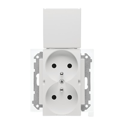 Simon 55 Gniazdo wtyczkowe podwójne do wersji IP44 - z uszczelką - klapka w kolorze pokrywy biały mat 16A