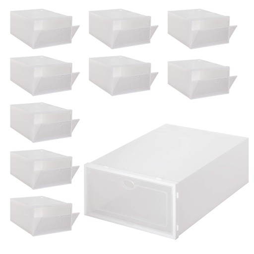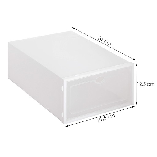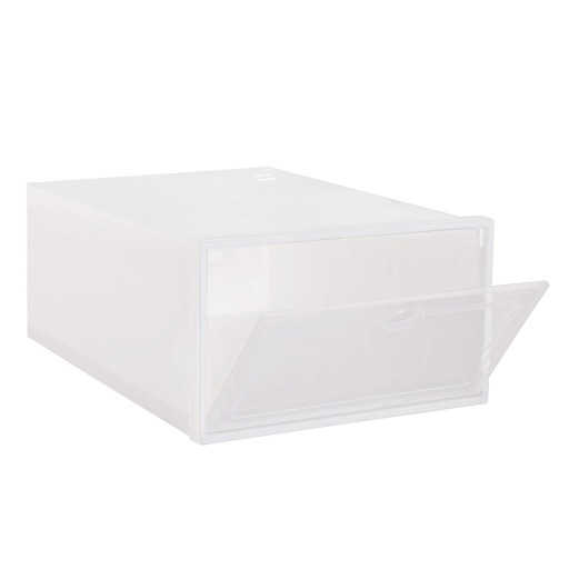 Pojemnik na obuwie został wyposażony w zamykaną klapę, które pozwoli na szybki dostęp do wybranych butów. Dodatkowo pudełko posiada specjalne zaczepy pozwalające na łączenie ze sobą pudełek umożliwiając tym samym ułożenie je na sobie. Używając organizera z zamknięciem buty zostaną ochronione przed kurzem oraz wilgocią.