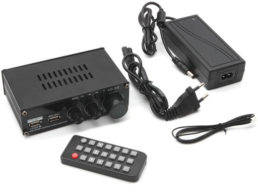 - Wzmacniacz z modułem Bluetooth 5.0 do bezprzewodowego odtwarzania muzyki ze smartfonów i tabletów