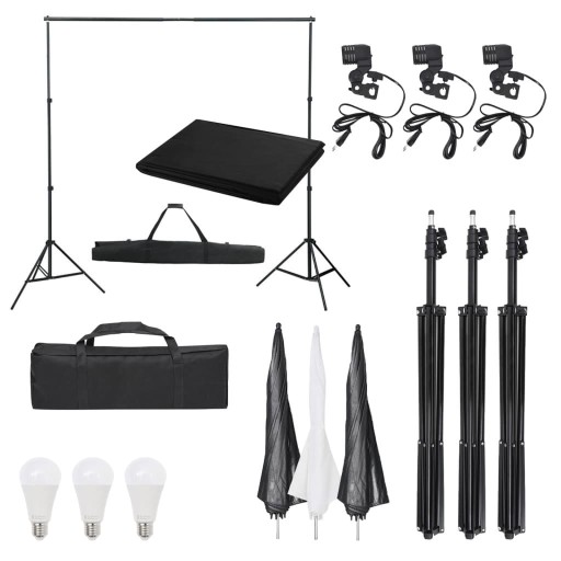 FOTOGRAFICZNY ZESTAW STUDYJNY Z LAMPAMI I TŁEM