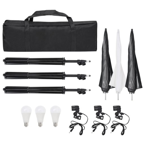 - Znakomite oświetlenie: poprzez zastosowanie lamp świecących światłem dziennym o temperaturze barwowej 5500 Kelwinów można uchwycić obiekt w naturalny sposób. Trzy białe parasolki zapewniają miękkie światło, co pozwala zniwelować ostre cienie.