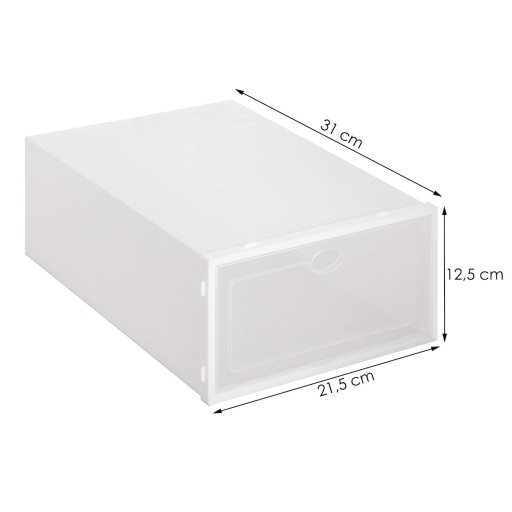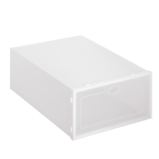 Pojemnik na obuwie został wyposażony w zamykaną klapę, które pozwoli na szybki dostęp do wybranych butów. Dodatkowo pudełko posiada specjalne zaczepy pozwalające na łączenie ze sobą pudełek umożliwiając tym samym ułożenie je na sobie. Używając organizera z zamknięciem buty zostaną ochronione przed kurzem oraz wilgocią.