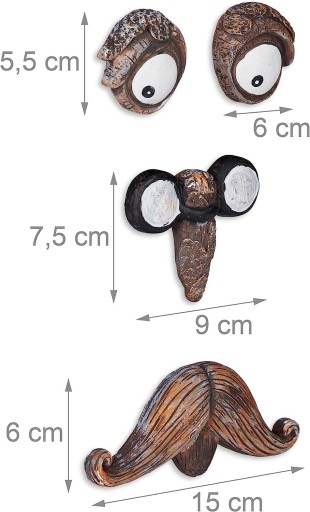 Przebywanie we własnym ogrodzie z bajki lub fantazji wydaje się niemal realistyczne. Nie wierzysz? Weź oczy, nos, w tym okulary do czytania i wąsy z tego zestawu i umieść je na drzewie w swoim ogrodzie według własnego uznania. Wgłębienia z tyłu pozwalają na łatwe mocowanie do drzewa za pomocą gwoździ lub wkrętów. Dekoracyjny zestaw twarzy składa się z 4 części i to wszystko, czego potrzebujesz, aby udekorować swoje drzewko czymś magicznym dla dzieci lub przechodniów.