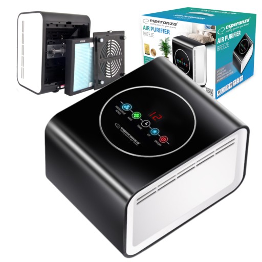 Dzięki zaawansowanemu, innowacyjnemu 3-poziomowemu filtrowi, oczyszczacz powietrza Esperanza zatrzymuje aż do 99.7% zanieczyszczeń takich jak: alergeny, pyłki czy kurz. Wchłania formaldehyd, benzen, ksylen oraz inne szkodliwe gazy, a także nieprzyjemne zapachy. Wbudowana lampa UV eliminuje bakterie, roztocza, wirusy i grzyby. Jony ujemne mają niezwykłą zdolność łączenia się z dodatnio naładowanymi cząstkami pyłu i dymu. Dzięki temu zabijają bakterie i wirusy. Oczyszczacz powietrza Esperanza to nowoczesne urządzenie, które zapewni idealnie czyste i świeże powietrze w Twoim domu.