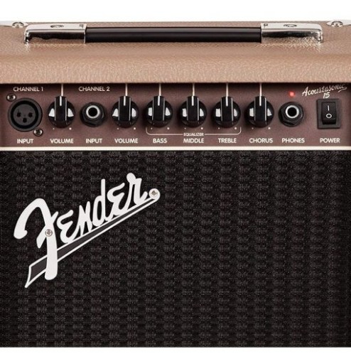Fender Acoustasonic 15 to funkcjonalna propozycja dla mobilnych performerów. Posiada dwa niezależne kanały, pierwszy - instrumentalny - oddaje do dyspozycji użytkowników regulator poziomu, 3-pasmowy korektor oraz chorus. W przypadku kanału mikrofonowego mamy wyłącznie potencjometr wzmocnienia i 3-pasmowy EQ. Całość opiera się na 6-calowym głośniku szerokopasmowym.