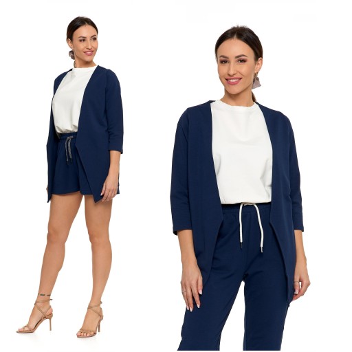 Narzutka damska dzianinowa marynarka to idealne połączenie elegancji i wygody. Wykonana z wysokiej jakości bawełny z domieszką elastanu, ta narzutka zapewnia nie tylko miękkość i przyjemność w dotyku, ale także doskonałe dopasowanie do Twojej sylwetki. Narzutka ma uniwersalny krój, który pasuje do różnych typów sylwetek i stylów. Możesz nosić ją jako lekką marynarkę, która dodaje formalności i elegancji do Twojej stylizacji. Jest to doskonały wybór dla tych, którzy pragną wyglądać stylowo, nie rezygnując z wygody.