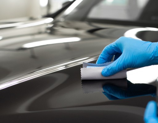 - Wybierz dowolny element pojazdu np. maskę i zacznij rozcierać powłokę. Powłokę aplikuj metodą na krzyż ( ruchy poziome oraz pionowe). Elementy tak duże jak maska czy dach warto podzielić na kilka części.