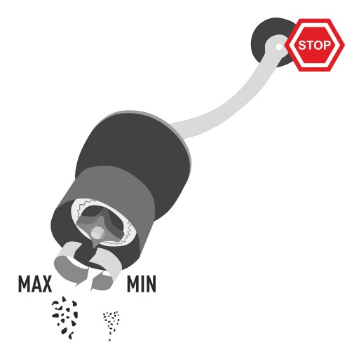 - Różne stopnie zmielenia — młynek wyposażony jest w regulowane, ceramiczne żarno umożliwiające zmielenie ziaren kawy, soli i przypraw do pożądanej przez Ciebie grubości!