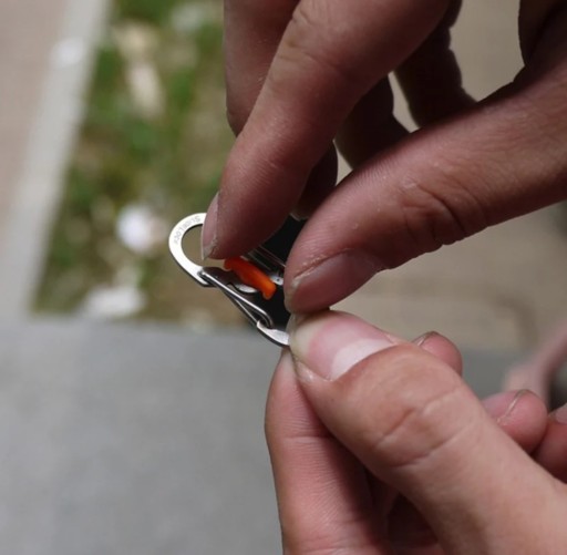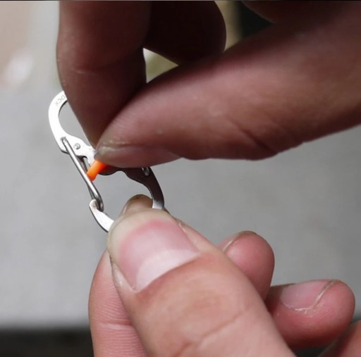 Karabińczyk został zaprojektowany tak by uniemożliwić przypadkowe otwarcie się. Pośrodku znajduje się "klin" który blokuje otwarcie karabińczyka.