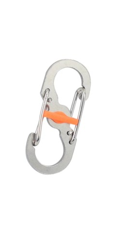 Przedmiotem sprzedaży jest mini karabinczyk typu "S'ka" z zabezpieczeniem przed przypadkowym otwarciem w kolorze srebrnym!