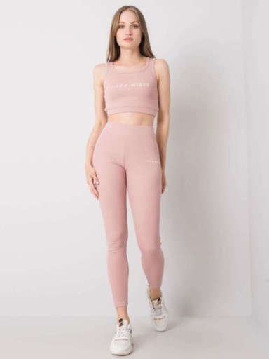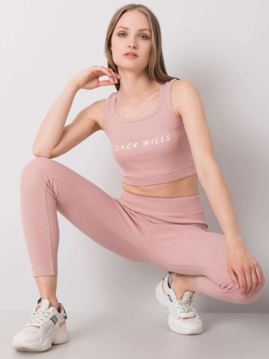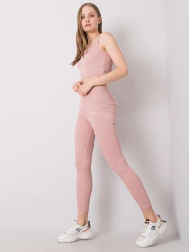 FOR FITNESS Różowy prążkowany komplet sportowy
