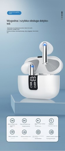 Wydajność: 4-mikrofony, redukcja szumu połączeń ENC podwójnym stuknięciem, cyfrowy wyświetlacz poziomu baterii, włączenie Hall, automatyczne włączanie parowania, brak rozróżnienia między master a slave, kontrola dotykowa, dobre parowanie, dobra stabilność i dobra jakość dźwięku. Operacja: Krótko naciśnij funkcję asystenta głosowego Siri przez dwie sekundy, kliknij pauza/odtwarzanie, dwukrotne kliknięcie w lewo, aby zwiększyć i prawo, aby zmniejszyć głośnośność. Odpowiedź/zakończ klikając na lewe/prawe ucho, a odrzuć krótko naciskając lewe/prawe ucho przez dwie sekundy.