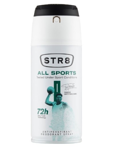 STR8 All Sports antyperspirant w sprayu 150ml dla mężczyzn. Posiada TURBO TECHNOLOGIĘ "Enkapsulacji" - świeżość zamknięta w kapsułkach, które uwalniają orzeźwiający zapach wraz z wysiłkiem.