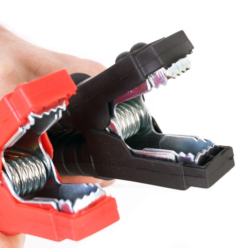 Zacisk kleszczowy biegunowy o wytrzymałości do 1000A. Idealnie nadaje się do kabli rozruchowych, spawarek i prac pod wysokim prądem. Zaletą jest mocna sprężyna oraz taśma ze stopu miedzi łącząca elementy składowe, dobrze znitowana konstrukcja, gumy izolacyjne.