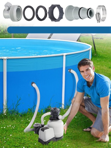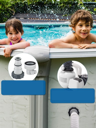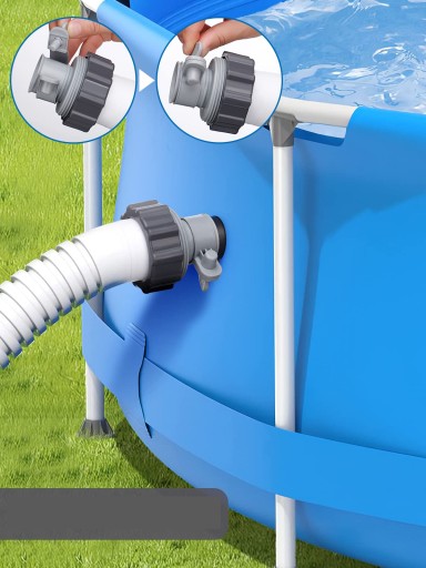 Możesz również podłączyć węże o różnych średnicach lub klamry wlotu i wylotu basenu, aby rozwiązać problem niekompatybilnych basenów naziemnych i pomp filtrujących oraz poprawić kompatybilność sprzętu.