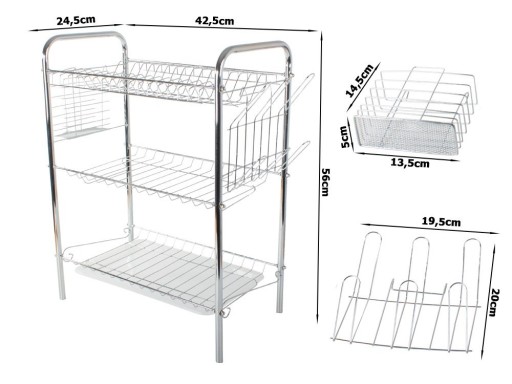 Ociekarka suszarka naczyń chrom trzy poziomy metal
