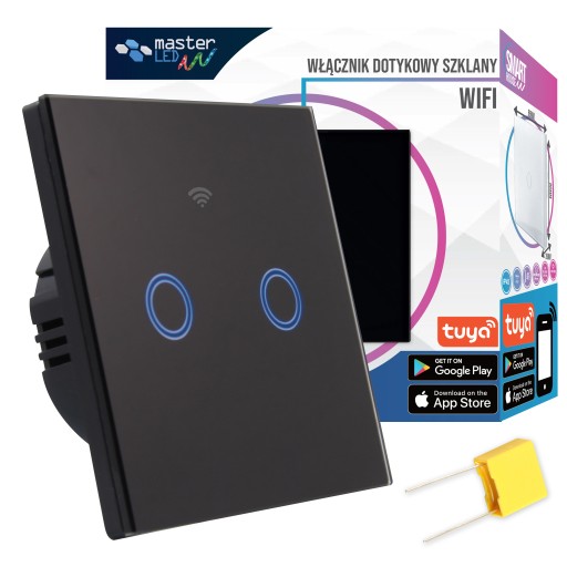 Włącznik szklany dotykowy WIFI podwójny czarny (5048)