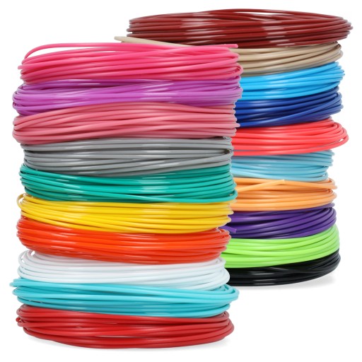 - 100 metrów kolorowych wkładów PLA marki XTECH - 20 kolorów po 5 m z każdego.