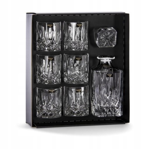 Zestaw do whisky dla prawdziwych koneserów – idealnie nadaje się na prezent, ponieważ posiada eleganckie, bardzo ekskluzywne opakowanie w kolorze czarnym z sygnowanym złotym logo Bohemia Prestige. Wykonany w całości ze szkła kryształowego, które jest nie tylko przejrzyste, bardzo trwałe i pięknie prezentuje się na stole, ale także przyjazne środowisku i w 100% nadaje się do recyklingu. Produkt można myć w zmywarce. W skład produktu wchodzą: karafka oraz 6 szklanek.