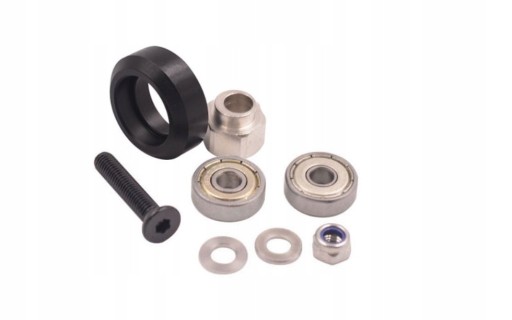 Precyzyjna podkładka jest umieszczona pomiędzy dwoma łożyskami. Aby zmontować, najpierw wciśnij jedno łożysko w koło. Następnie za pomocą śruby jako prowadnicy wepchnij precyzyjną podkładkę i drugie łożysko na drugą stronę koła.
